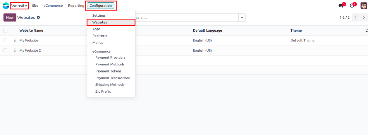 ◆ User need to navigate to Website >> Configuration >> Websites and select website.