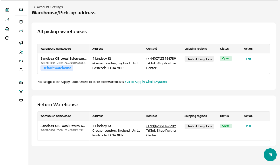 ◆ Click on button Import Warehouse To fetch Warehouses From Tiktok Shop.