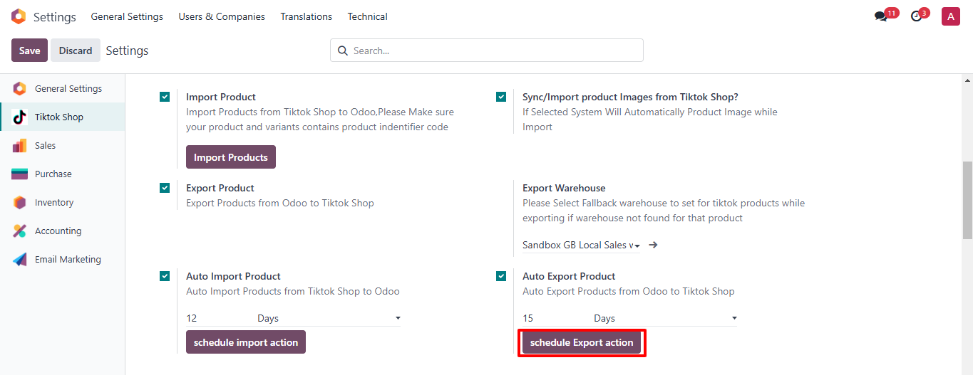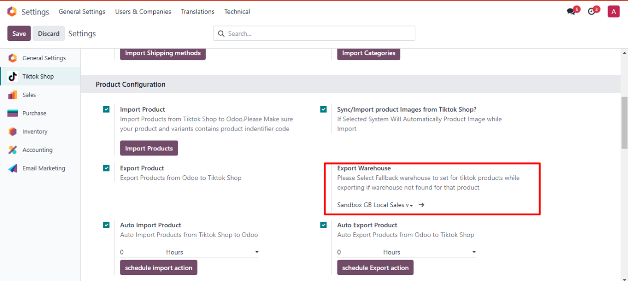 ◆ Navigate to Export Warehouse>> Here you can configure Fallback Warehouse for products which are not associated with Tiktok Shop warehouses.