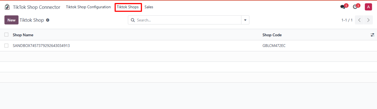 ◆ Navigate to Tiktok Shop Connector>>Tiktok Shop>> Here you can find imported Shops.