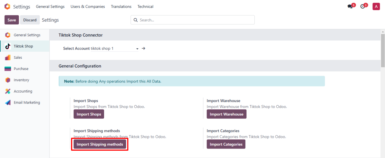◆ Click on button Import Shipping methods To fetch Shipping methods From Tiktok Shop.
