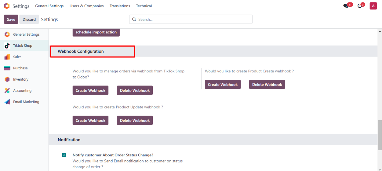 ◆ You'll receive real-time updates for order or product changes, and Odoo will automatically reflect those changes.