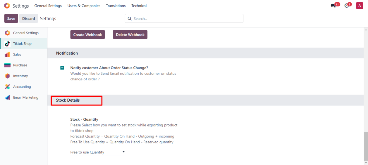 ◆ Here you can configure How you want stock to Export to Tiktok shop with products.