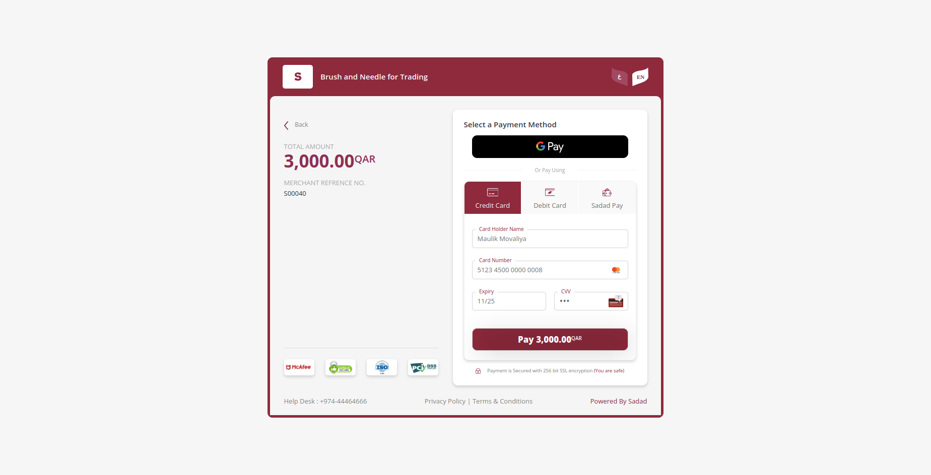 - User will redirect in sadad payment screen after click on "Pay Now" button.