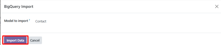 ◆ Upon successful import of data from BigQuery to Odoo, a notification will appear, confirming that the table has been Imported successfully. An example of the notification is shown below..