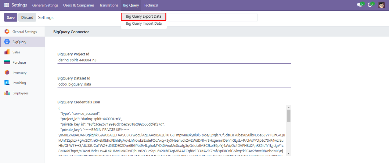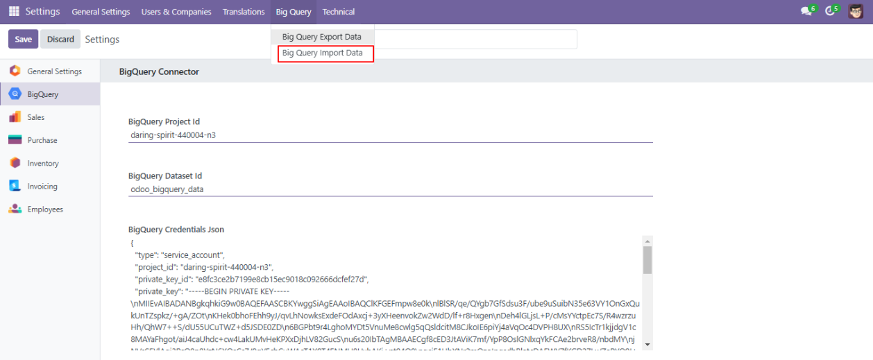 ◆ Navigate to Settings >> BigQuery>>BigQuery Import Data.