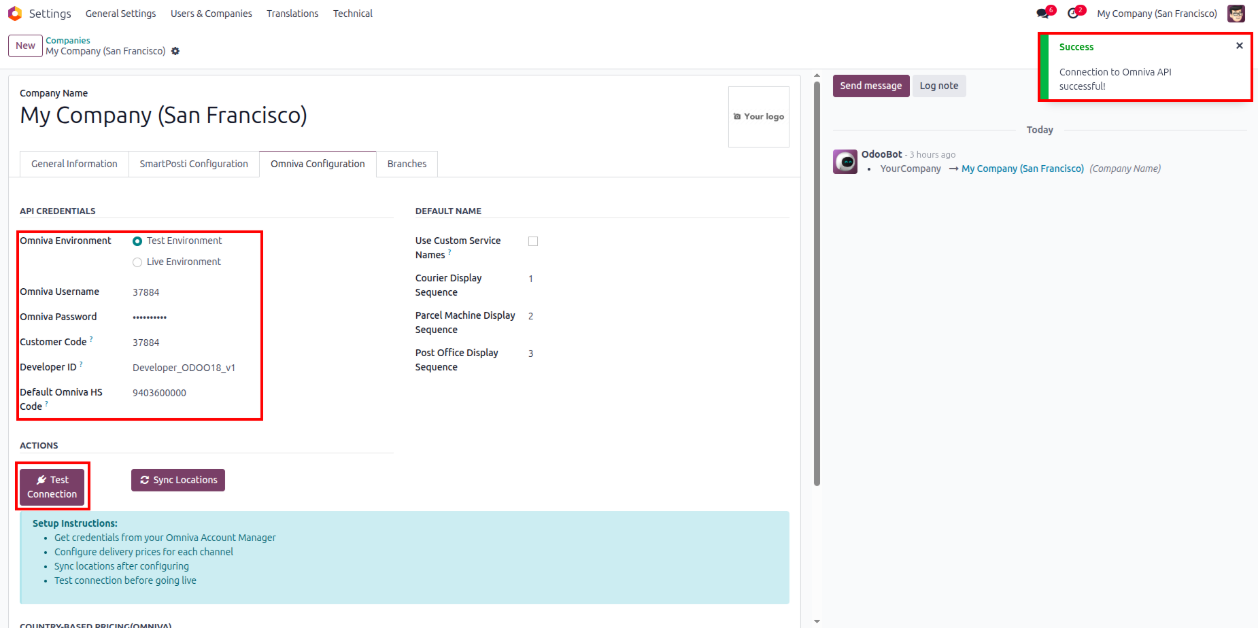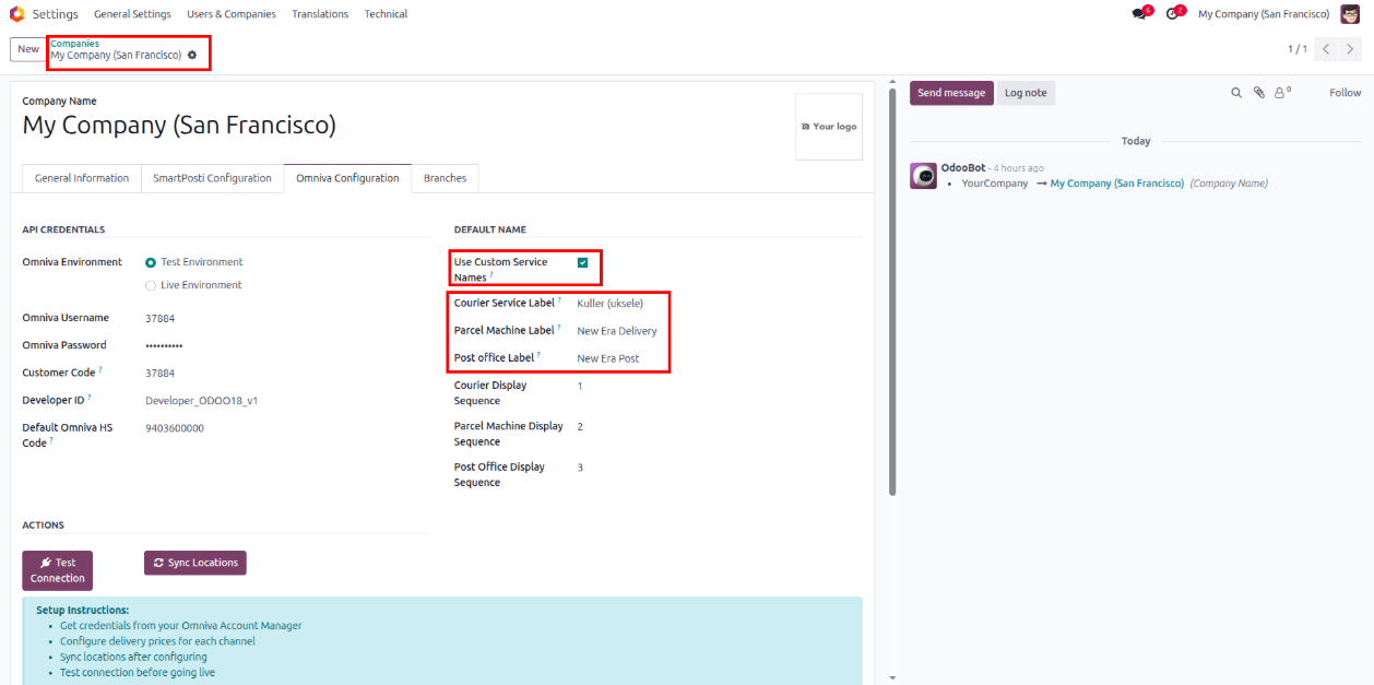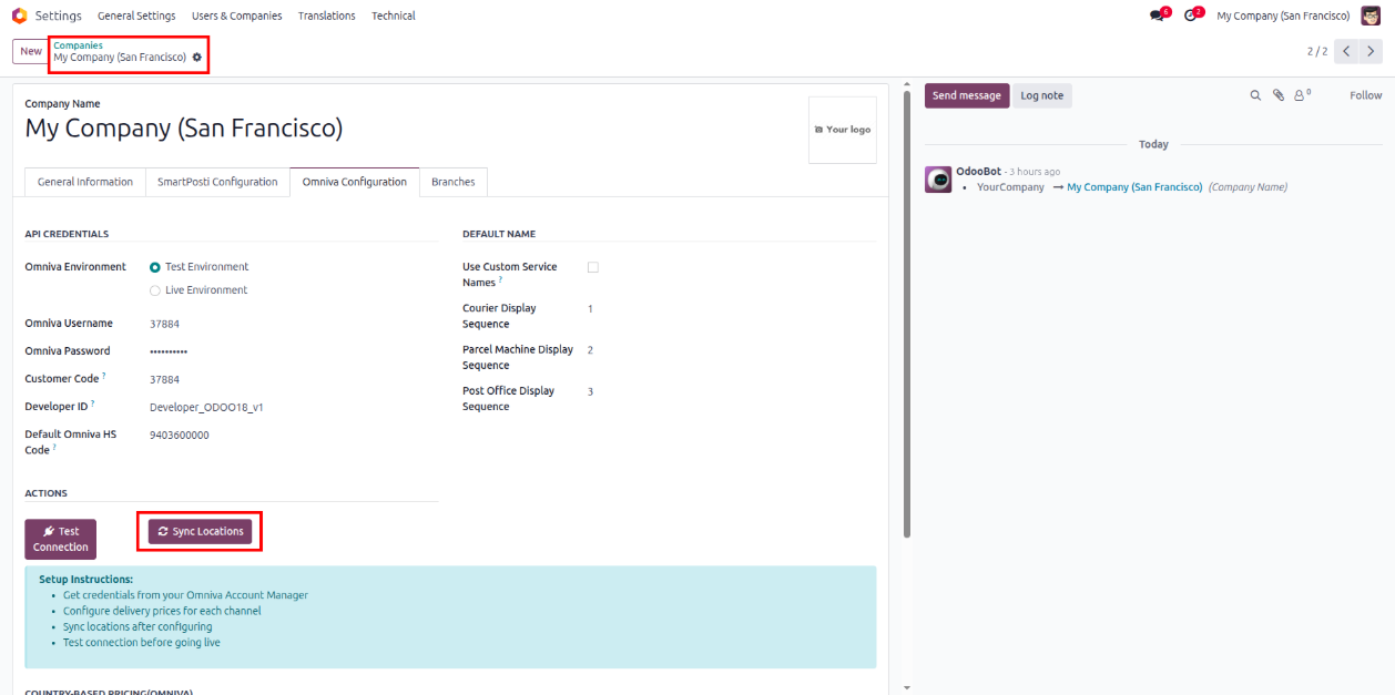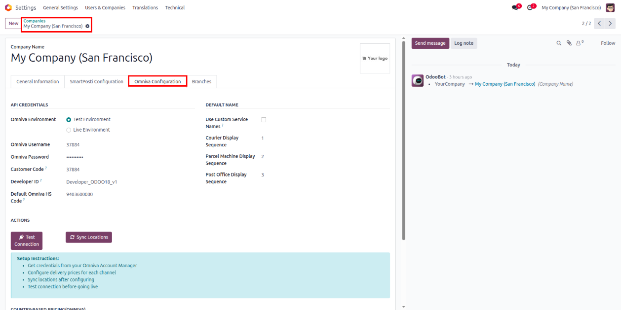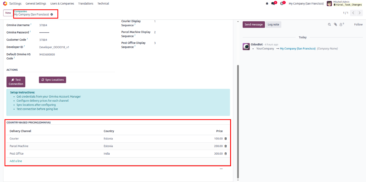 - Navigate to Settings >> Companies there user will find Omniva Configuration page.