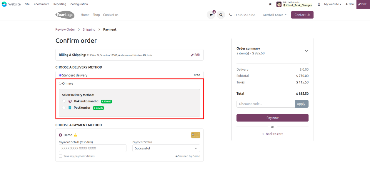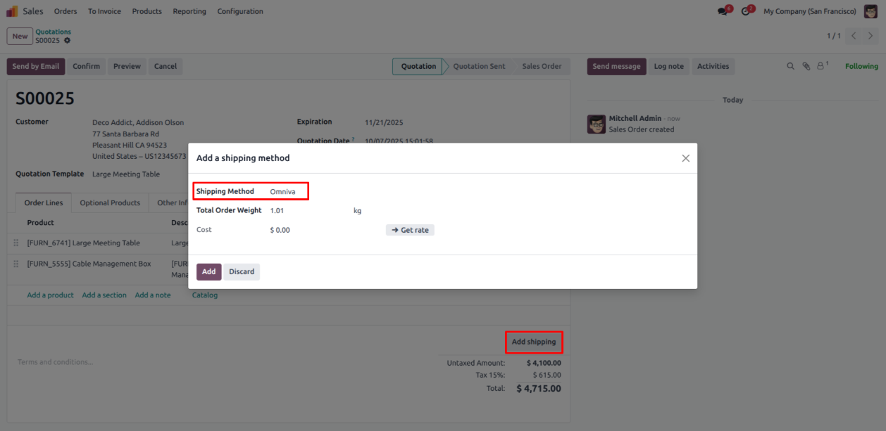 - Now it's time to create sales order with omniva shipping.