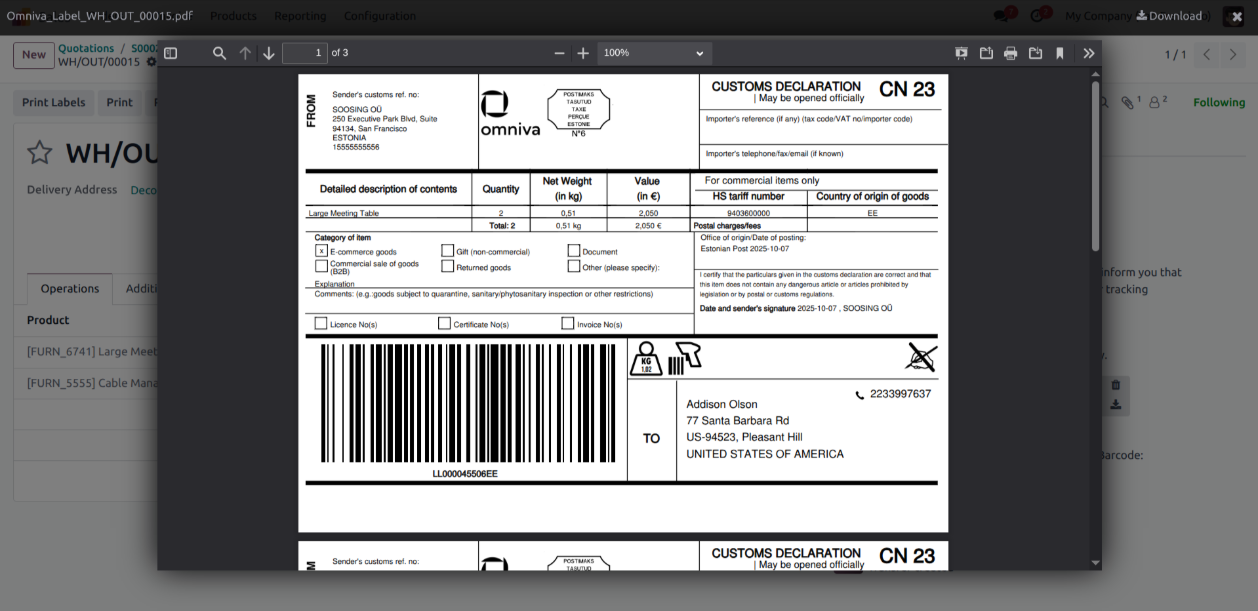 With full coverage across Estonia, Finland, Latvia, and Lithuania, the Omniva Integration ensures fast, accurate, and flexible delivery management. Improve customer satisfaction with instant tracking updates, optimized order handling, and seamless shipping automation—turning your Odoo system into a professional logistics hub.