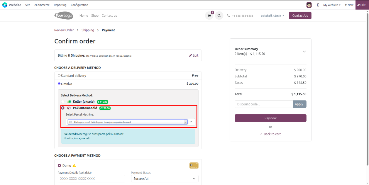 - Later if user change the field Parcel Machine Label with custom label as ex, New Era Delivery these same name will be shown into website checkout page.