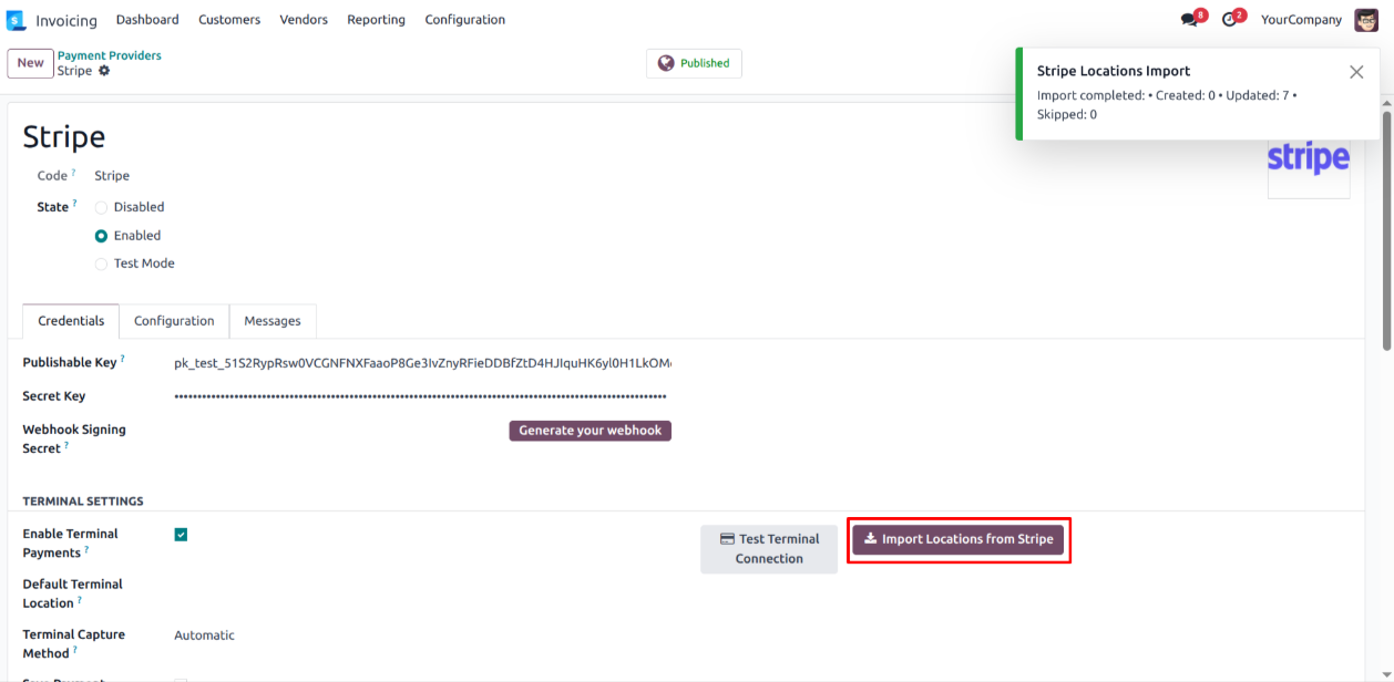 - After that click Import Locations from Stripe on the payment provider page to sync them automatically.
