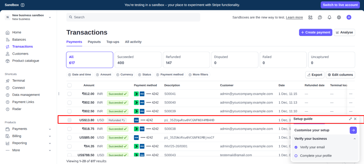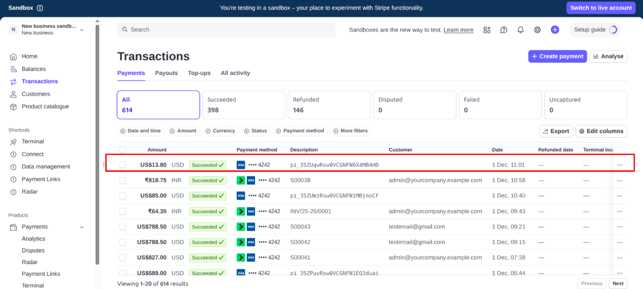 - If a payment is initiated by mistake, you can open the payment transaction in Odoo and click Refund to refund it in both Odoo and Stripe.
