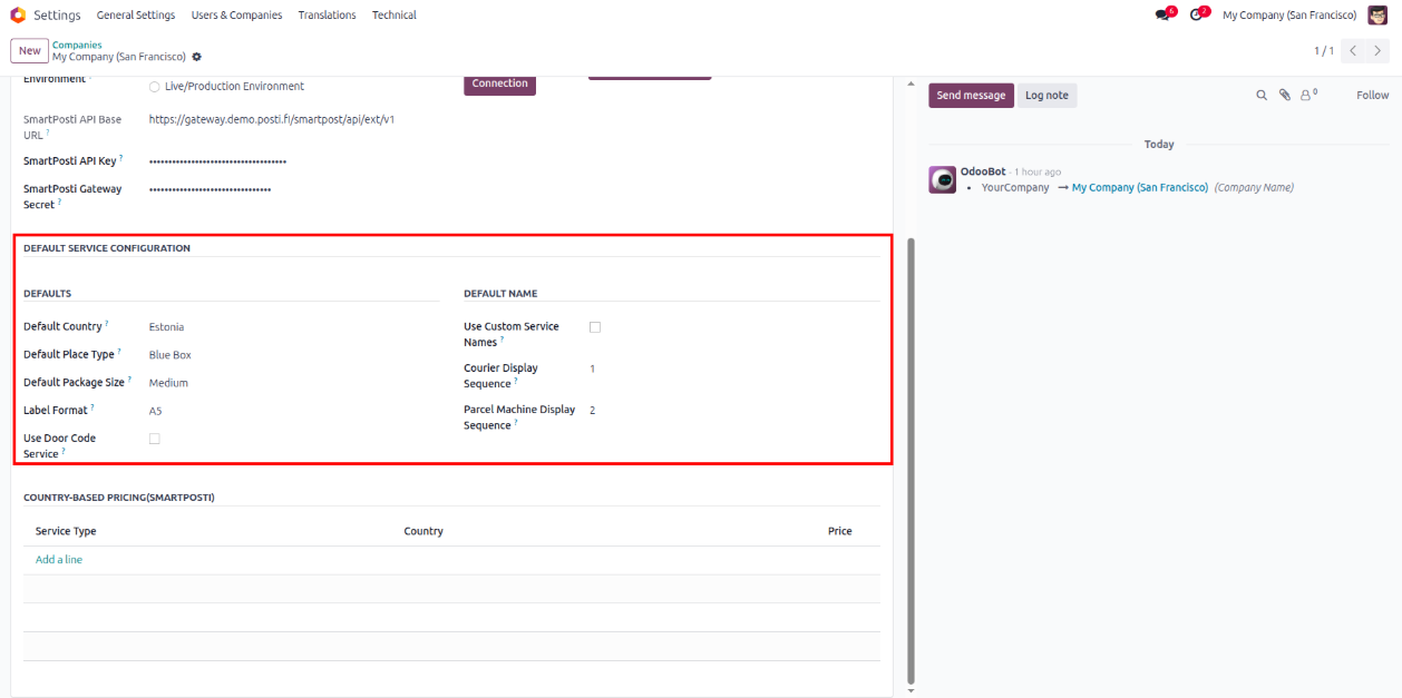 • Here user need to configure the pricing country wise under Country-Based Pricing(Smartposti) in the page SmartPosti Configuration inside company.