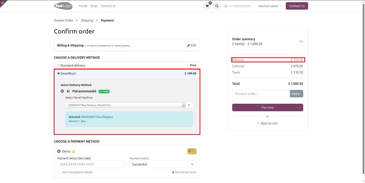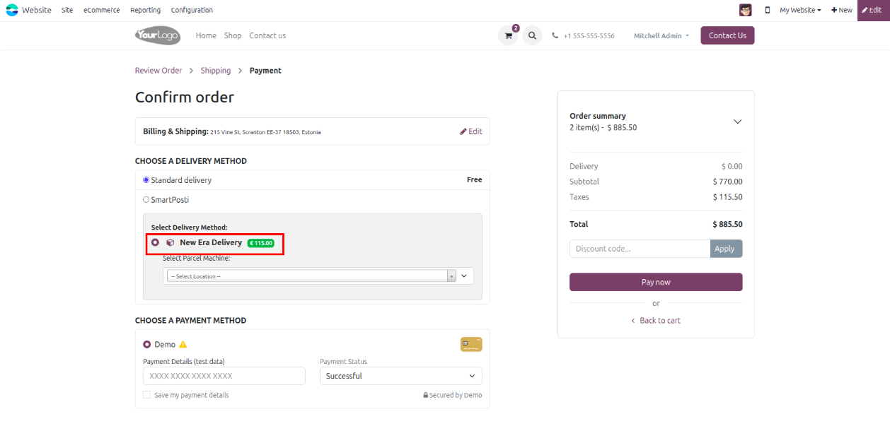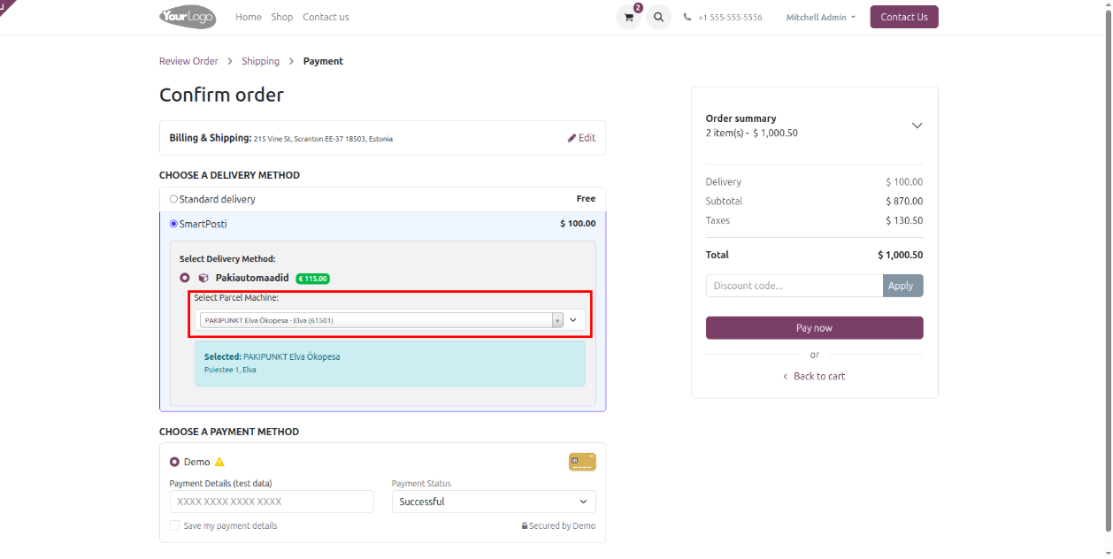 • Later if user change the field Parcel Machine Label with custom label as ex, New Era Delivery these same name will be shown into website checkout page.