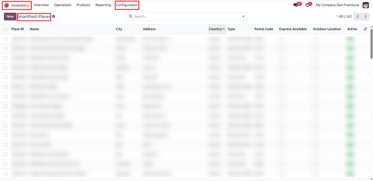 • Navigate to Inventory >> Configuration >> Smartposti Places there user will see all fetched smartposti places synced.